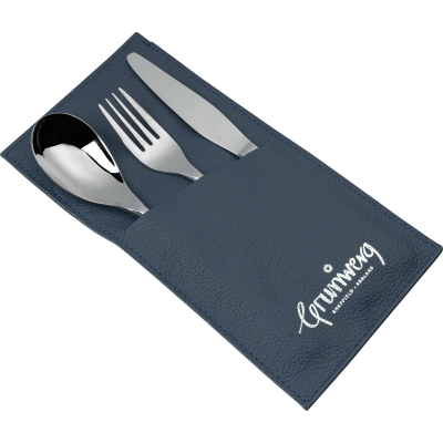3 PCE CUTLERY SET WITH LEATHER POUCH, JUBILEE
