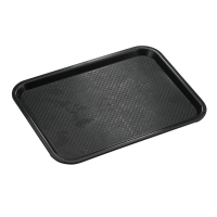 Black plastic food tray.