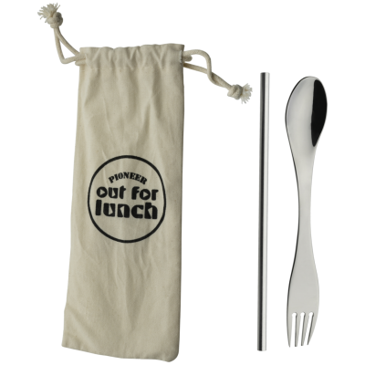 Out For Lunch S/S Lunch Box 800ml with Spork, Straw & Bag Mirror